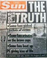 The headlines and sub-headlines on the front page of The Sun newspaper on the Wednesday following the disaster were as follows: